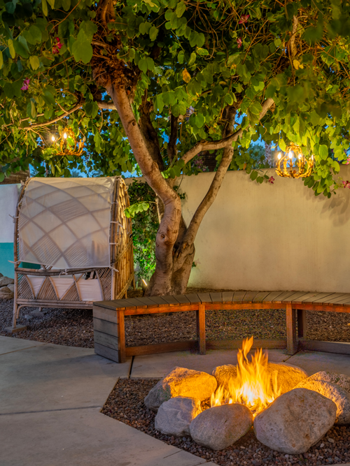 Step foot on the Dive Palm Springs property, and you’ll immediately be transported to the French Riviera of the 1960s. The 11-room boutique hotel “just has a cool, chill vibe to it,” says April Smith, vice president of Mariners Companies, the private equity investment that recently purchased Dive. The property got its start in 1954 as the Sunrise Villa, a western-style hotel. Over the years, it changed names and themes, becoming the Alpine Gardens before transforming into Colt’s Lodge in 2015. The current iteration opened in August 2019 after a two-month renovation. The hotel features furnishings by Serena & Lily and Anthropologie, premium linens, and original murals. Most of the King rooms come with an outdoor patio, complete with an oversized daybed, and one has a private hot tub. The most magical room is the La Reve, French for “The Dream.” This room has a custom ceiling mural and wallpaper by Christian Lacroix, a solid brass queen bed with an ultra-comfortable Tuft and Needle mattress, and a red-tiled bathroom with a rainfall shower and smoked glass two-way mirror between the bedroom and shower. Dive is an adults-only property, and can host events for up to 150 people, including weddings, retreats, and reunions. Guests have been raving about the lush grounds, cozy daybeds, the restored original Libott pool, the koi pond, and The Orchard — Dive calls this its “vacation spot within a vacation spot,” as it has a two-person swing chair, waterfall, comfortable couches and loungers, and a vintage neon sign of a diving girl, affectionately nicknamed Lulu.