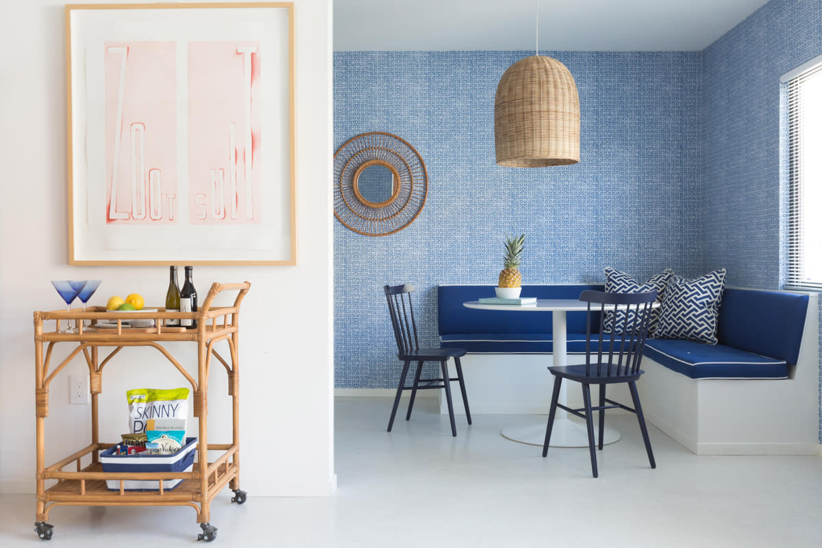 As soon as guests step on property at Holiday House, they can’t help but smile. It’s a fun hotel, reimagined in 2017 by interior designer Mark D. Sikes. Built in 1951 by Herbert W. Burns, Holiday House has 28 guest rooms, all completely remodeled with oversized showers, Waterworks bath hardware, and Malin + Goetz bath amenities; some also have private outdoors spaces and Smeg appliances. The property is decorated in calming shades of blue, and visitors will spot intricate tilework and art by Roy Liechtenstein and David Hockney, among other notable names. The property is adults only, 21 and over, and there are no telephones or televisions in the rooms, ensuring tranquility. At The Pantry, guests can order lunch, dinner, and weekend brunch (try the lobster roll or club sandwich) and there are also special events, like Fried Chicken Family Dinner, held twice a month on Wednesdays. The full bar is open until 11 p.m. daily.