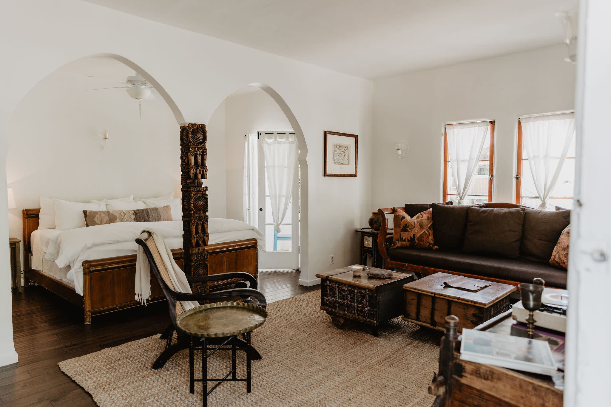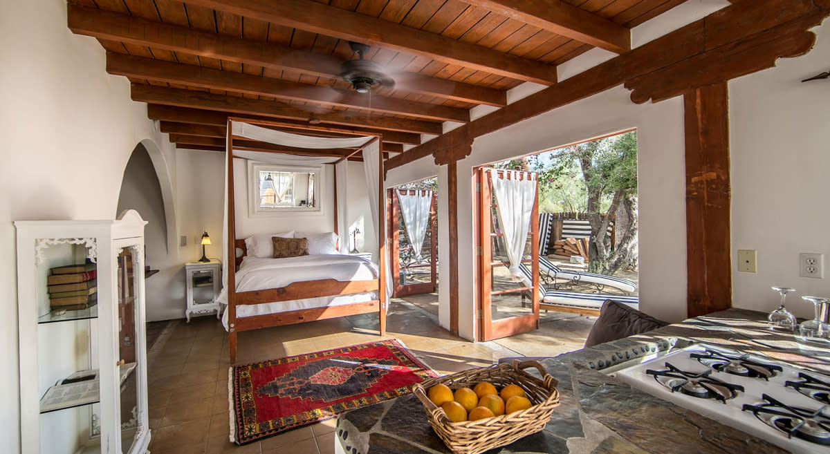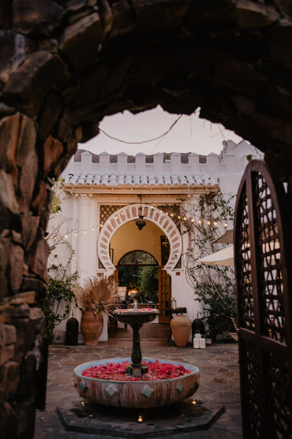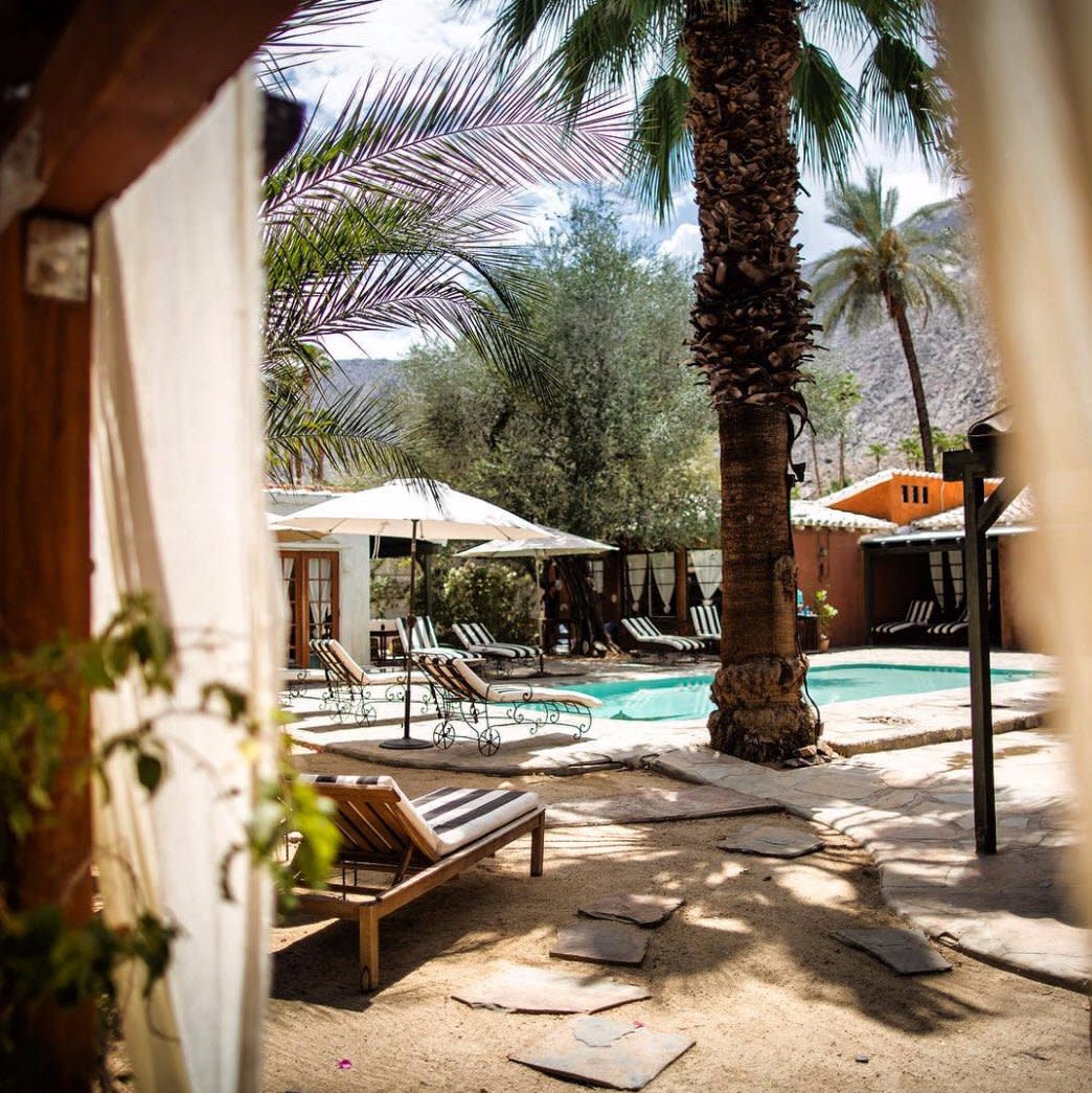There’s no place like the Korakia Pensione. The historic property says it “blends the silhouette of Tangier with a whisper of the Mediterranean,” and is the perfect escape. There are two restored historic villas with spacious rooms featuring wood-beamed ceilings, stone showers, balconies, private patios, French doors, and antique and handmade furniture. The Moroccan villa was built in 1924 as a hideaway of Scottish painter Gordon Coutts, who wanted to recreate his earlier life in Tangier. Guests at Korakia Pensione are treated to outdoor meditation sessions, hot breakfasts in the Moroccan courtyard, use of books in the library lounge and cruisers to get around town, Moroccan tea service in the afternoon, and vintage movies screened outside at night. The Moroccan courtyard is filled with fountains, a stone waterfall, olive trees, date palms, citrus, and bougainvillea, and as the sun begins to set, staff light hundreds of candles and lanterns across the property, setting off a magical glow. Massage treatments can be booked in the indoor/outdoor spa lodge or in guest rooms, and the two heated saltwater pools, with views of the San Jacinto Mountains, are open all day and night.