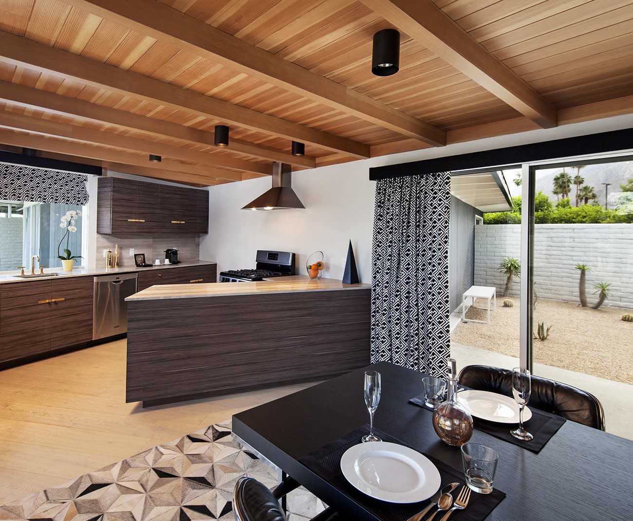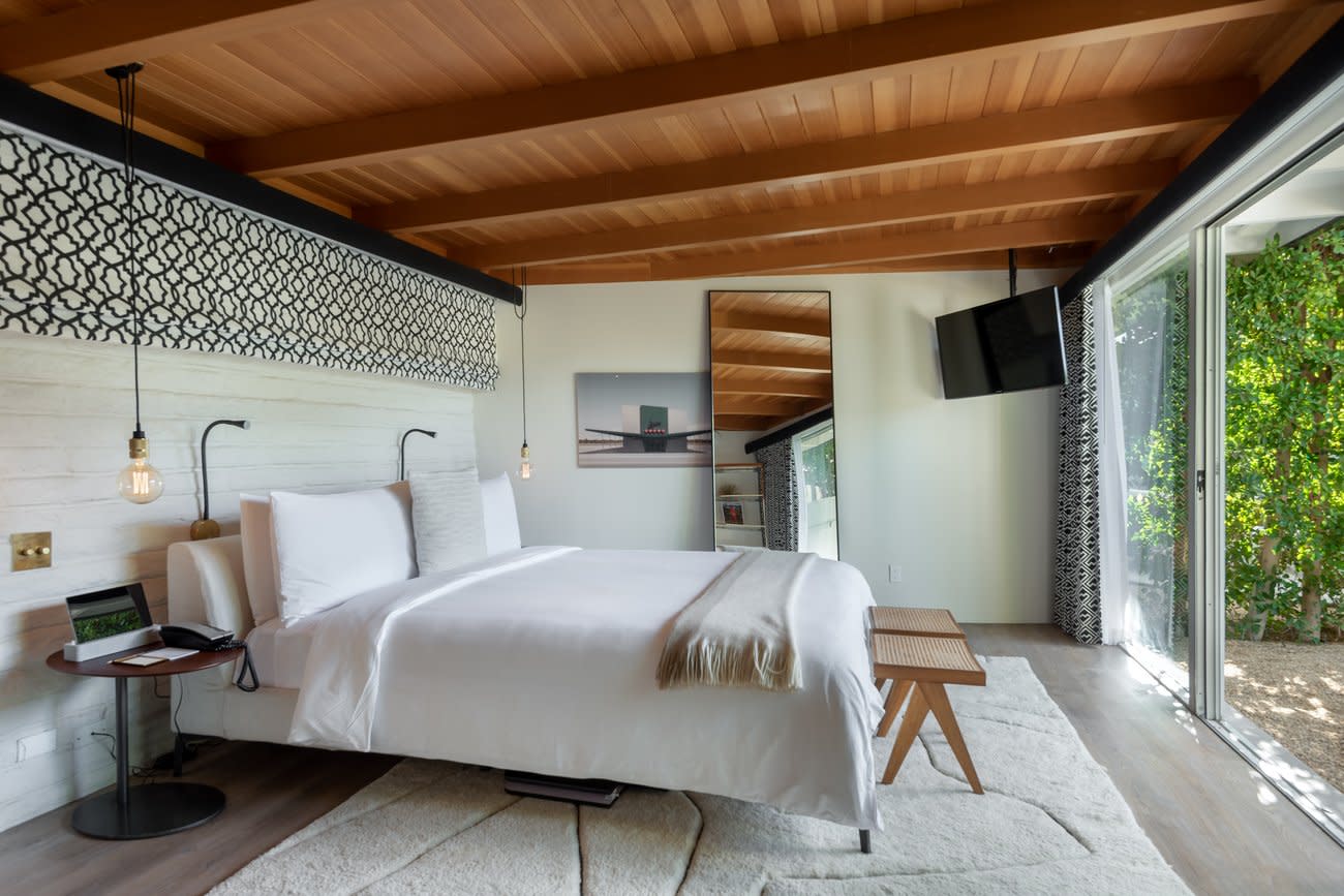 L’Horizon Resort and Spa, a part of Herman Luxury Resorts, started as a private getaway for Hollywood stars, and today, it’s been restored to its Golden Age glory. Designer Steve Hermann had his eyes on Palm Springs, and turned the 25-bungalow property into a resort known around the world. L’Horizon is the flagship of his new luxury hospitality company, Steve Hermann Hotels, and was originally designed in 1952 by William F. Cody as a retreat for television producer and oil tycoon Jack Wrather and his actress wife, Bonita “Bunny” Granville. The rooms feel more like private residences, and are spaced across three acres. They are light and bright, with custom natural fiber mattresses, luxurious Frette bed linens, oversized bathrooms and showers, Le Labo bath products, Nespresso coffee machines, smart TVs, and Apple TVs. The Residence is the property’s most spectacular accommodation; Wrather’s original home, it’s 2,000 square feet, with a private full-sized pool and yard. The living room and yard have unobstructed views of the mountains, and there is a sunken seating area, wood-burning fireplace, dining room, wet bar, kitchen, marble bathrooms with rainforest showers, and an outdoor shower. The 21-and-over property is also home to SOPA, a gourmet restaurant and cocktail lounge; The Spa, which offers massages, body treatments, facials, and add-ons like peppermint foot therapy and wild lime scalp treatments; and Le Shop, a boutique featuring Naturopathica’s skincare and body products, resort wear, swimsuits, jewelry, sunglasses, and home accessories.