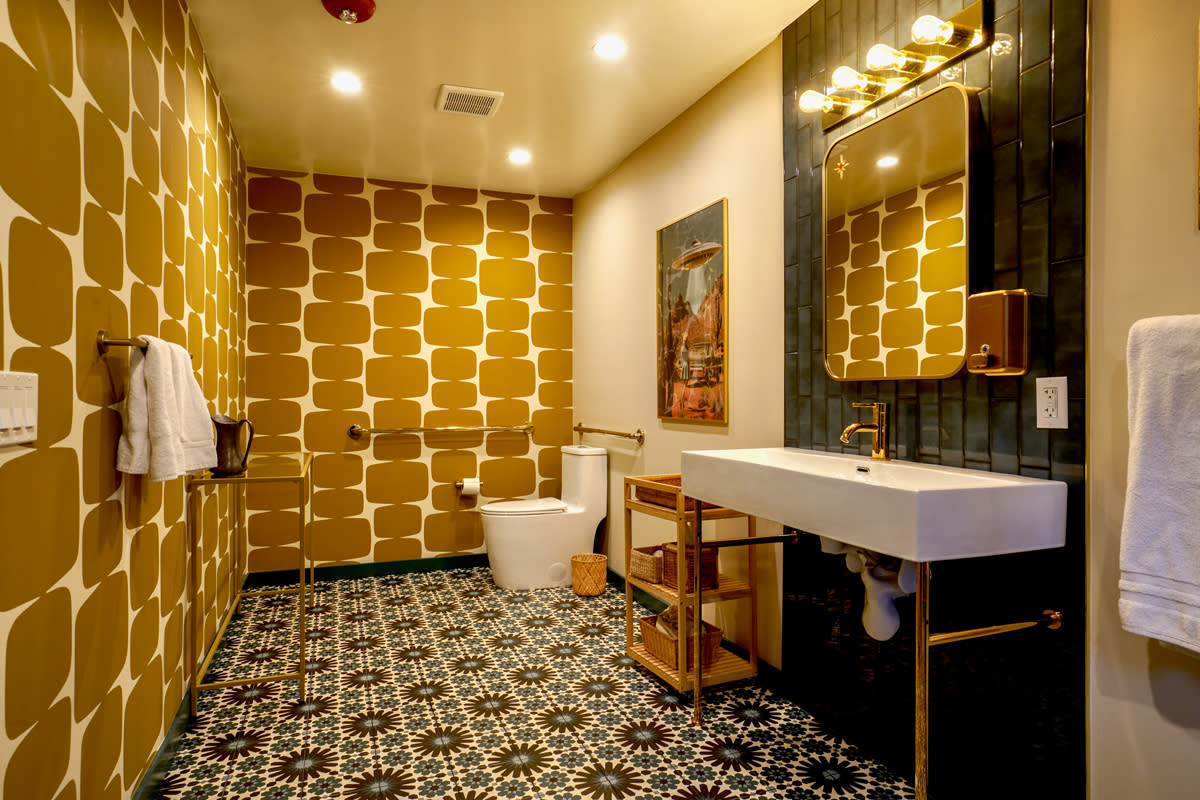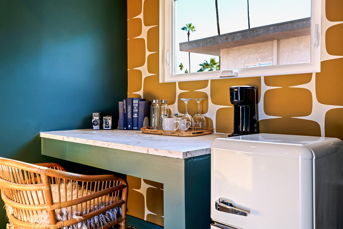 Prepare to be dazzled at The Stardust Hotel The Stardust Hotel is back and shining brighter than ever Owners Jessica and Tim Spry revitalized this 1955 property by turning it into a “luxurious time capsule, mixing vintage art and decor with vibrant color and modern design,” Jessica said. The nine accommodations feel like individual “jewel boxes,” she added, with spacious bathrooms featuring walk-in rain showers. Guests are encouraged to “sip coffee and watch the sunrise on the balcony or do yoga looking at the mountains,” Jessica said. “We want you to walk into an entirely different world and stop thinking about real life for a while. Here, you’re a celebrity.” The Sprys are no strangers to the Palm Springs hospitality scene. They own The Marley and Hotel El Cid, and were drawn to their newest property because, “how can you not buy a hotel called The Stardust?” Jessica said. “We were initially attracted attracted to the hotel based on the great name, central location, size, and mid-century roots.” With nods to the past, like a fantastically retro sign, freshly painted pink exterior, and vintage outfits guests can dress up in, The Stardust is also thoroughly modern, with amenities including an outdoor 420 smoking lounge, gift shop with one-of-a-kind art and collectibles, Casper mattresses, flatscreen Roku televisions, and a beautiful heated pool. Like The Marley and Hotel El Cid, The Stardust is “designed to be a private hotel, to host your family reunion, girls trip, or bachelorette party,” Jessica said. There is a large community room with a chef’s kitchen, big screen television, and couch able to seat 15 people. Single reservations are also taken, and Jessica encourages guests to “please, bring your dog best friend.” Another fun twist is that if a piece of room art or decor catches someone’s eye, it is available to bring home. “If you like it, you can buy it,” Jessica said. “Everything in this hotel is for sale.” The Sprys want each guest to walk away from The Stardust feeling like they had a custom stay, personalized with their every need in mind. On top of the already included amenities, the hotel is happy to arrange added-fee extras, including in-room massages, group yoga and meditation classes, nanny and dog walking services, pantry stocking, and a private chef. Anything else you may need is just a short walk away. “We’re located in the best part of town and a block away from award-winning restaurants and bars, a bike shop, liquor store, dispensary, and artisanal ice cream,” Jessica said.
