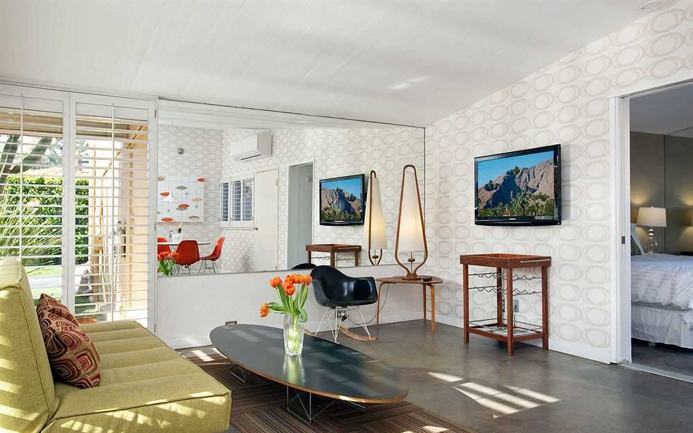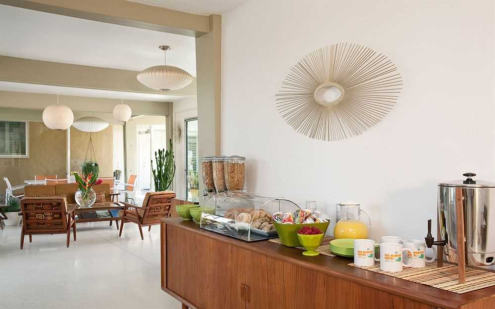 The Del Marcos Hotel checks off every box for mid-century modern enthusiasts. This 17-room boutique hotel launched the career of William F. Cody, one of Palm Springs’ most influential and innovative architects. It was his first independent commission in the city, and earned Cody a design award from the American Institute of Architects. Now, it is part of the luxury Kirkwood Collection portfolio. Founder and CEO Alex Kirkwood described the Del Marcos as “a desert icon with rich heritage and mid-century charm,” which helped put Palm Springs on the map. The Kirkwood Collection has a “track record of preserving and bringing life into historic landmarks,” he added, and “we are the perfect stewards to protect the timeless allure of this desert oasis.” Cody used native stone and redwood for the Del Marcos, and it retains the spirit of the 1950s and 1960s, with retro furnishings and decor. The restored rooms are spacious and surround the hotel’s inviting saltwater pool and fire pits. It is an adults only, smoke-free hotel with some rooms that are dog friendly. Every morning, guests receive complimentary breakfasts of coffee, tea, fruit, and assorted baked goods, and the friendly staff will help with everything from arranging golf tee times to setting up in-room spa treatments.