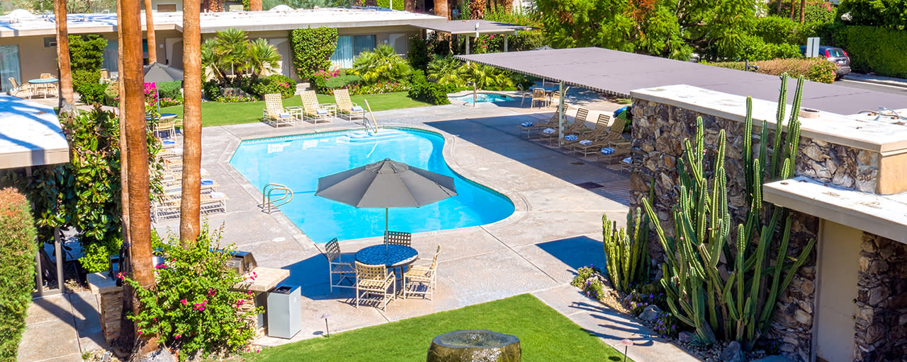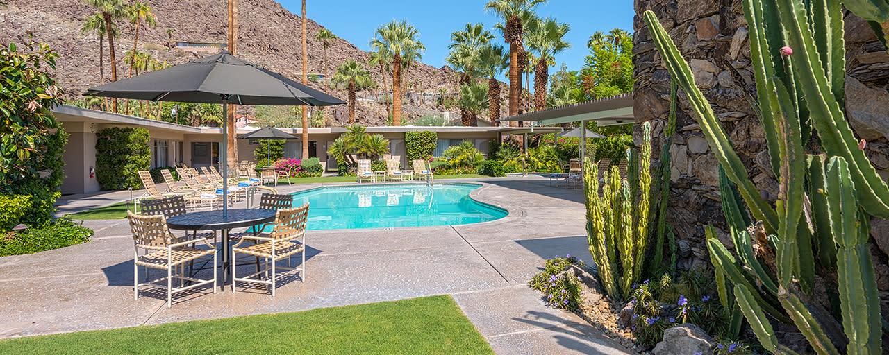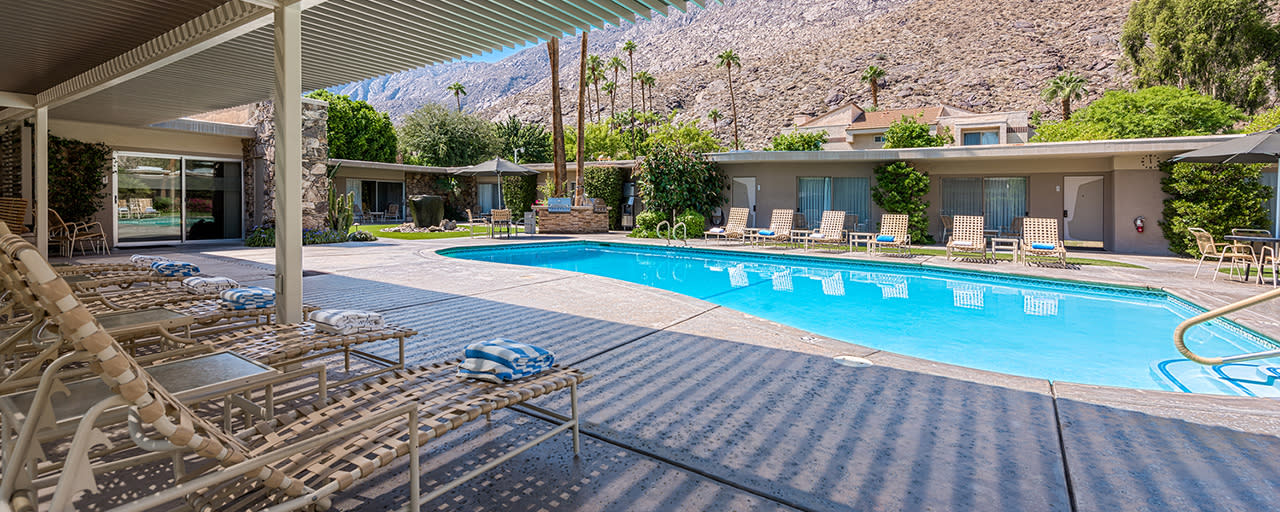The Desert Hills Resort Hotel in Palm Springs, snuggled up against the rugged San Jacinto Mountains. Built in 1956, it is situated in the tranquil Tennis Club district, a few blocks from downtown Palm Springs. The hotel retains the aura of years past, reminiscent of the original 1950s and ’60s mid-century modern design. The property’s 14 studios and one- and two-bedroom suites open to individual patios overlooking a lush, flower-filled courtyard and inviting pool and spa. Eleven rooms come with complete kitchens, and amenities include complimentary cruiser bikes, luxurious cashmere bedding and robes, WiFi in the rooms and courtyard, and a complimentary breakfast.